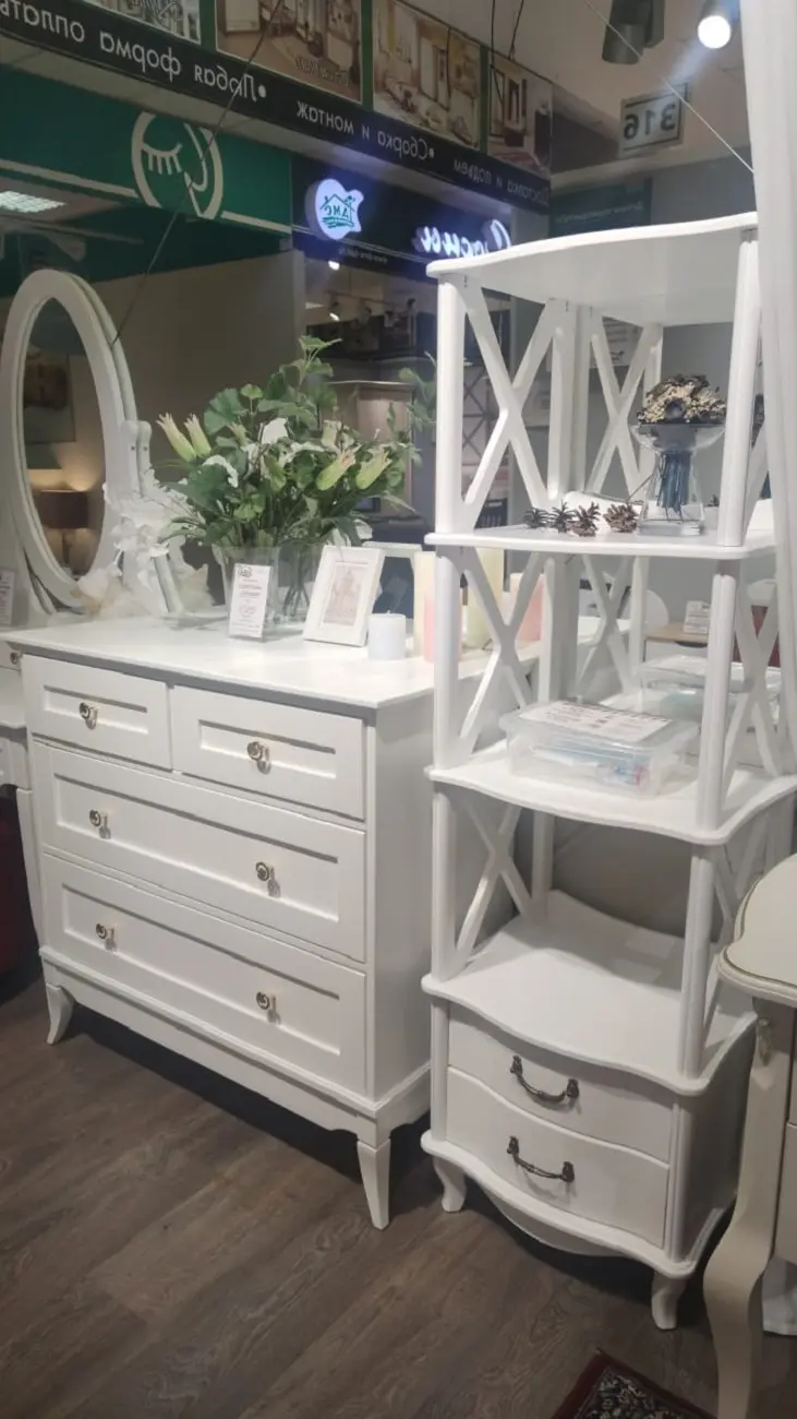 Функциональная, воздушная и универсальная этажерка с двумя выдвижными ящиками и полками.