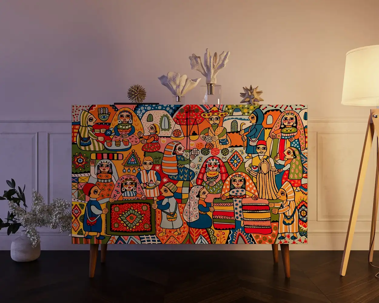 Большая коллекция мебели для гостиных и спален: комоды, стеллажи, рабочие столы, буфеты, кровати. Особенность коллекции – яркие дизайнерские фасады на любой вкус. На выбор предлагается около 50 вариантов принтов для оформления фасадов. Принты наносятся УФ-чернилами и не выцветают под солнечными лучами.