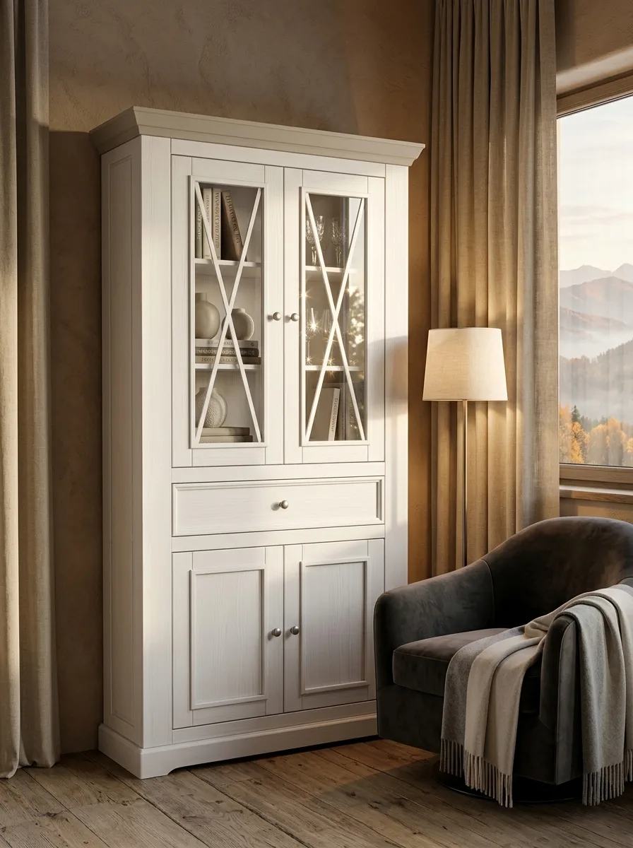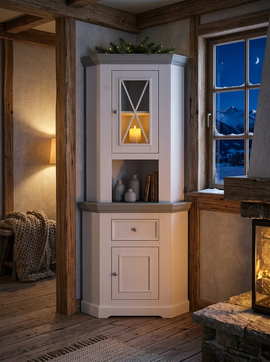 Надстройка комода углового (буфет угловой) Форест белый воск/серый