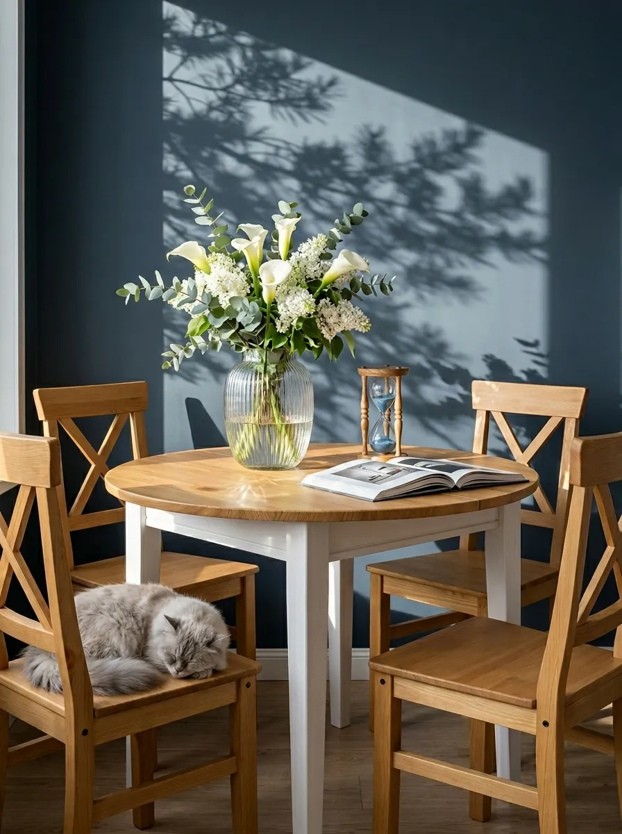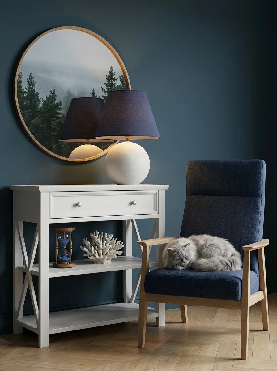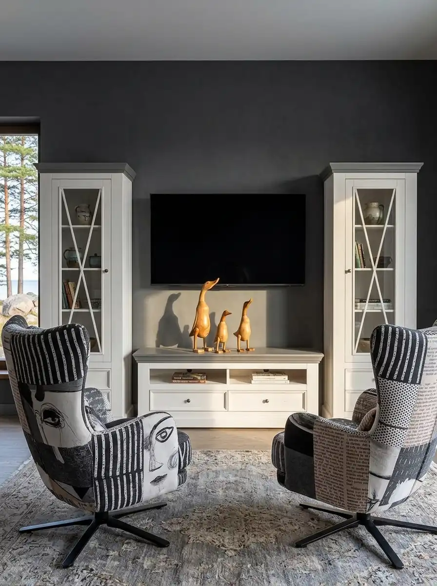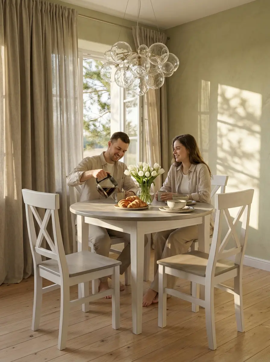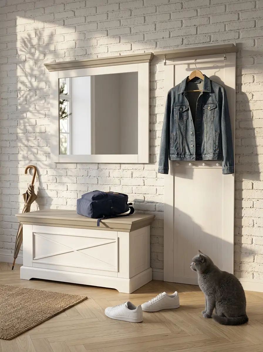 В коллекцию входят обеденные и журнальные столы, комоды, шкафы, стулья, тумбы ТВ, навесные полки, стеллажи и сундуки для кухни, спальни, гостиной комнаты, библиотеки и прихожей. Мебель изготавливается из натурального дерева – массива сосны, окрашивается в два цвета – белый воск/антрацит и серый 7012/бейц-масло.
