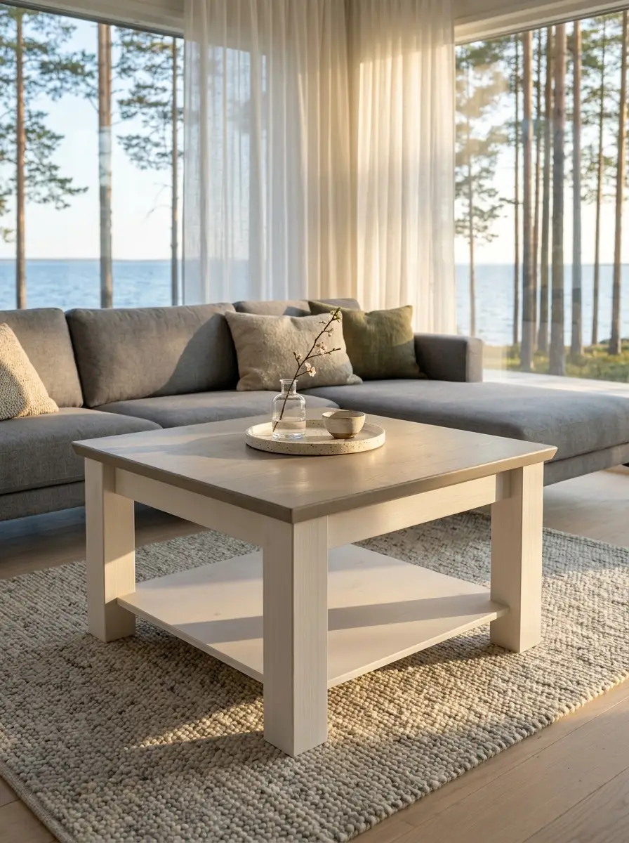 Стол массив сосны Форест журнальный большой белый воск/серый