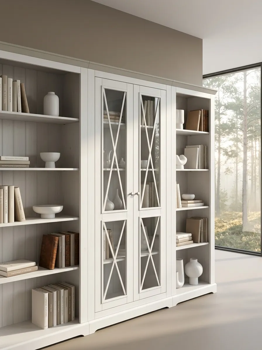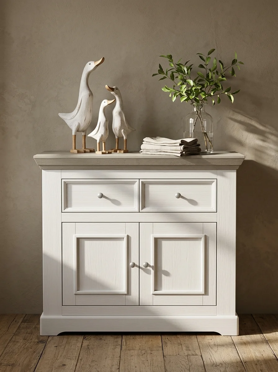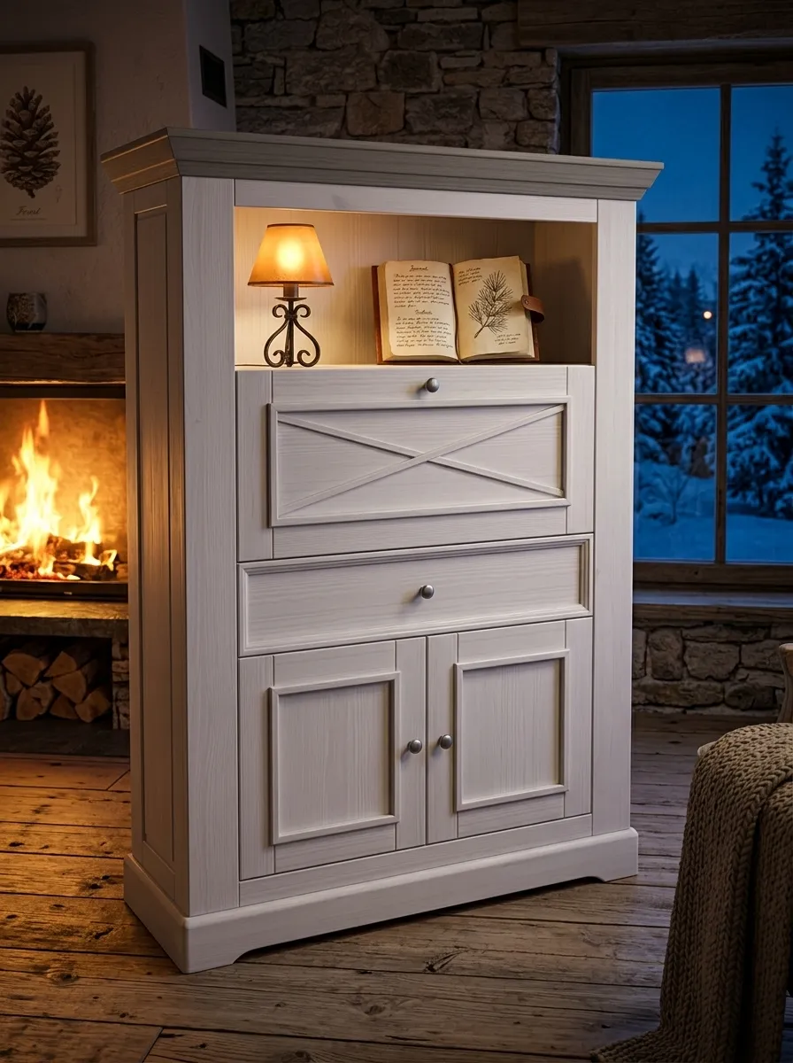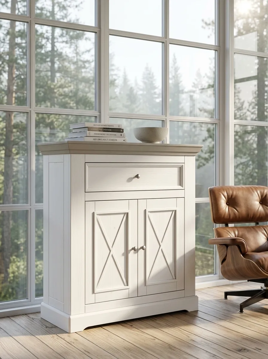 Комод Форест 2 двери 1 ящик с 2 полками Форест белый воск/серый