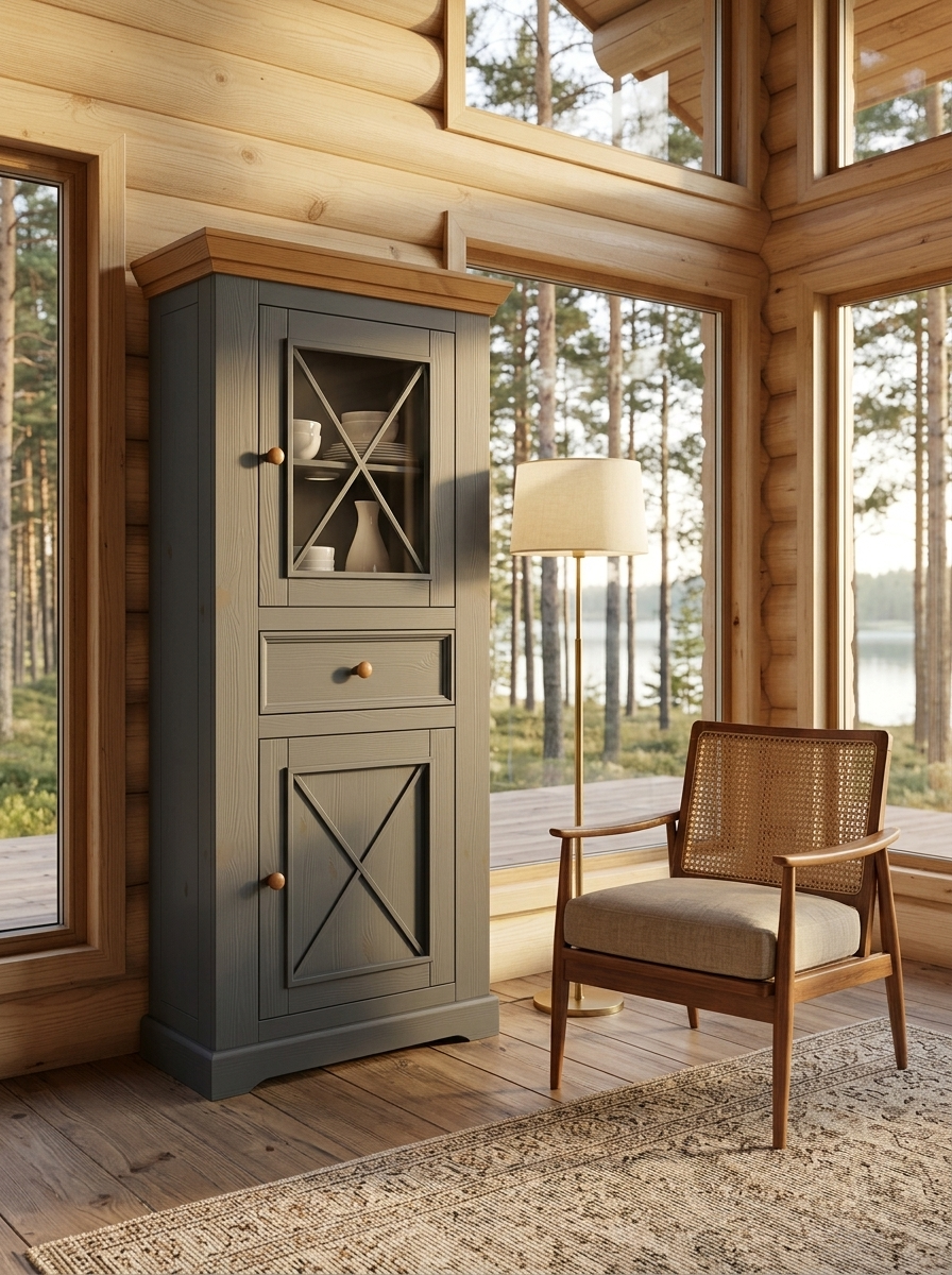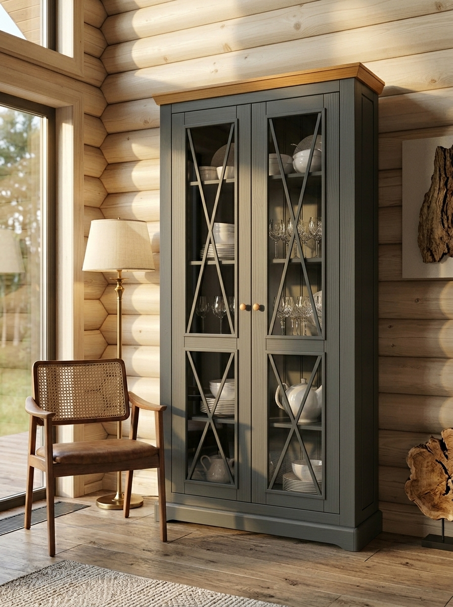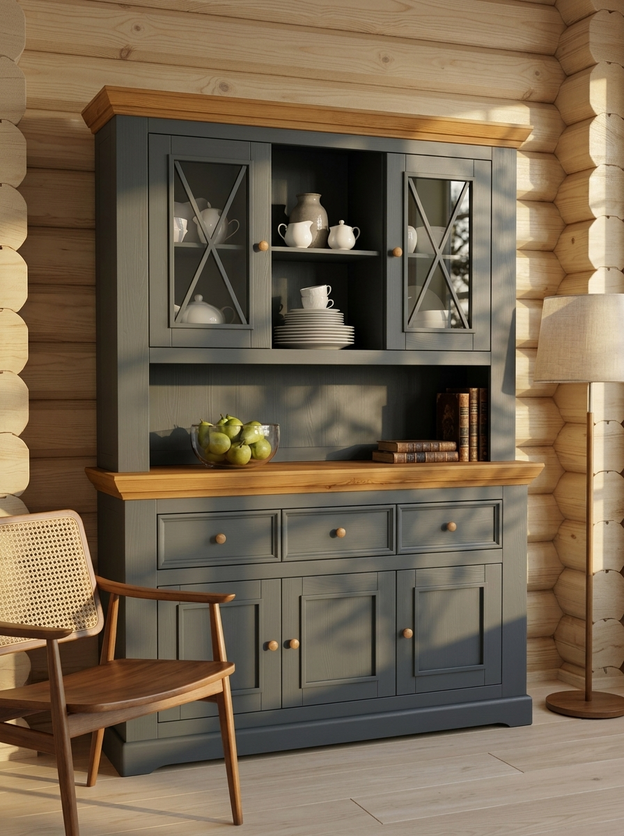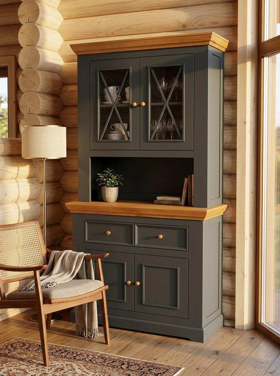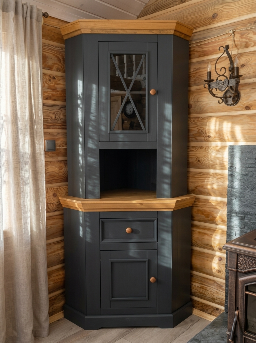 Надстройка комода углового (буфет угловой) Форест серый 7012/бейц-масло