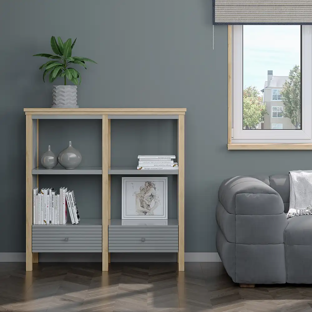Тумбы, комоды и стеллажи «Вояж» в скандинавском стиле изготавливаются из массива сосны. Это cтильная современная мебель для спален, прихожих, гостиных, библиотек, комнат-кабинетов. Предлагается 2 цветовых варианта: «белый лак/антик 24» и «серый 7042/антик 24».