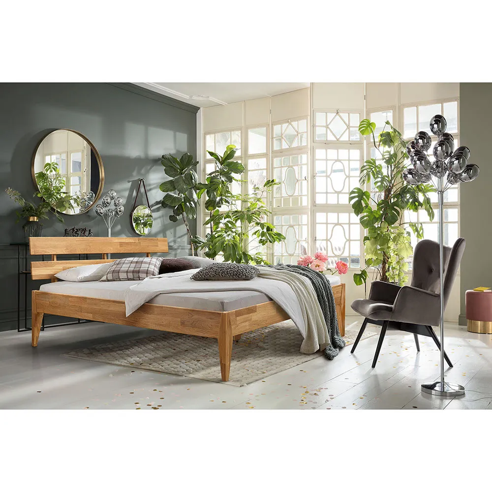 Двуспальная кровать «Эльке» — это идеальное сочетание стиля, комфорта и надёжности. Каркас кровати изготовлен из натурального дерева – массива дуба. Одна из особенностей кровати – изящные высокие ножки. Из шести вариантов отделки можно выбрать тот, который лучше всего подойдёт к вашему интерьеру.