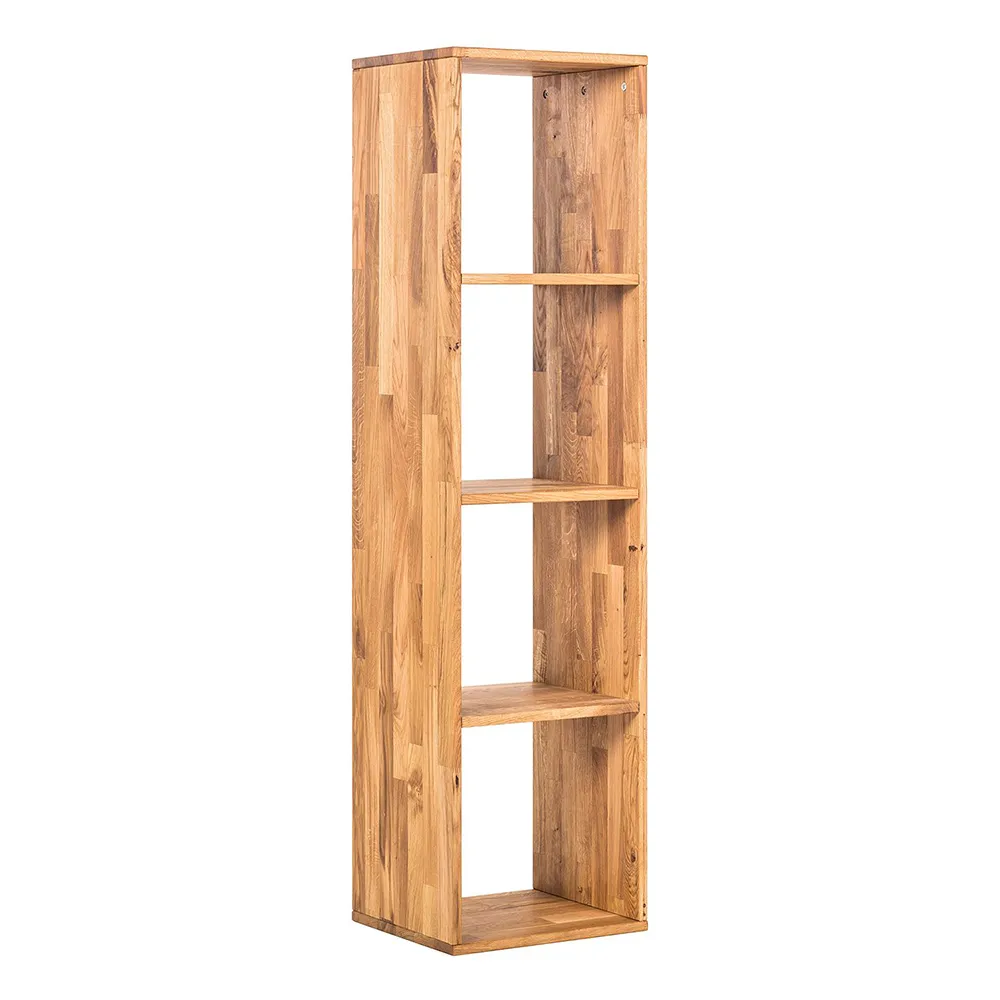 Стеллаж изготавливается из натурального долговечного материала – массива дуба. Дерево имеет красивую текстуру и приятно на ощупь. У стеллажа одна секция с четырьмя полками. Он поставляется в разобранном виде, в одной упаковке. Размеры стеллажа 390х350х1500 мм, вес 27 кг.