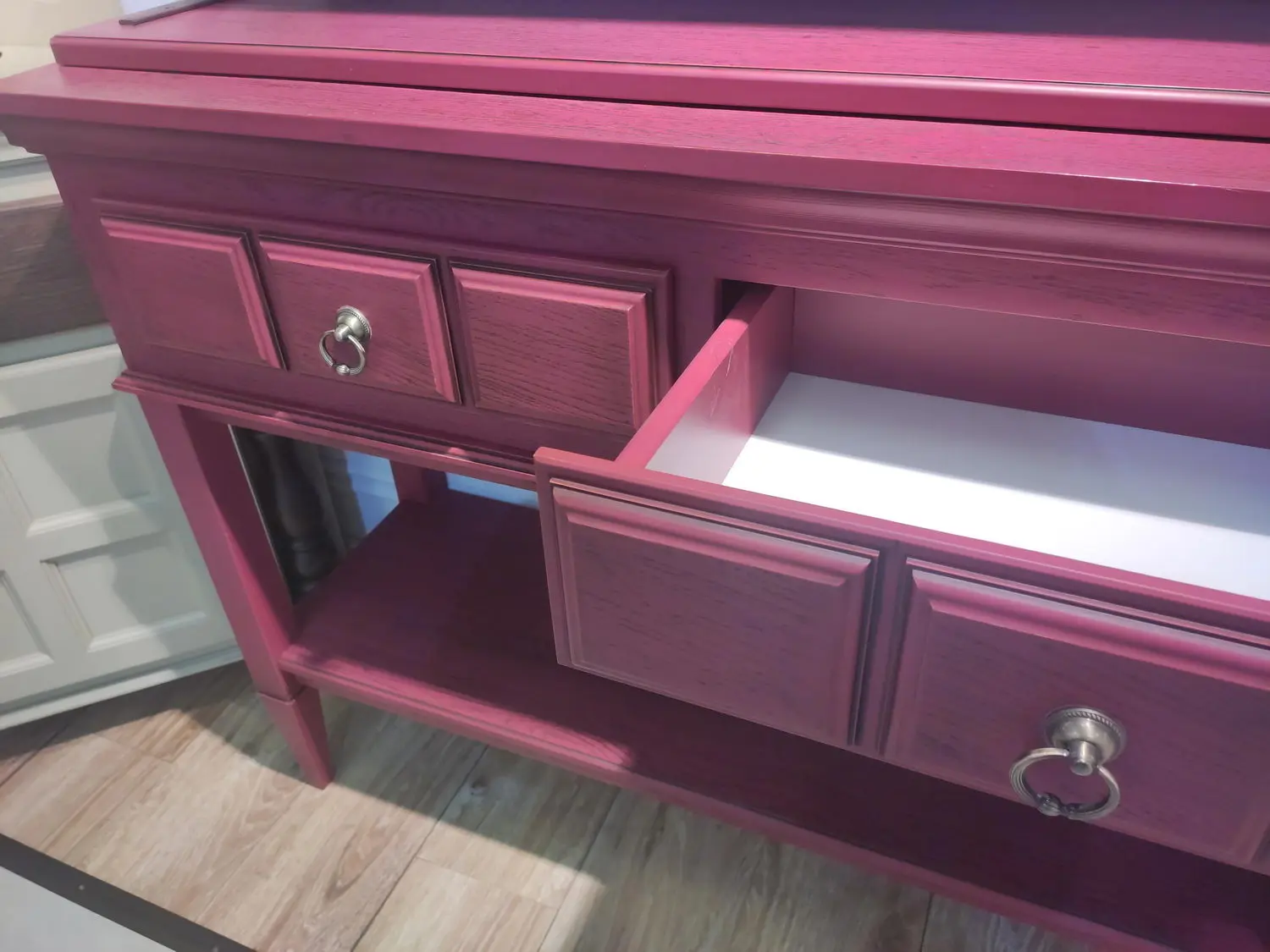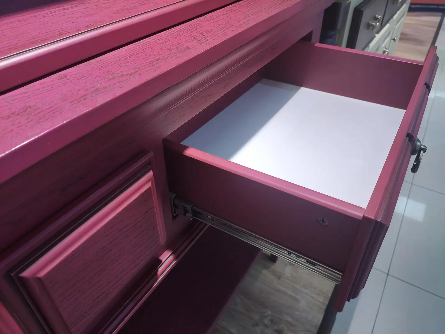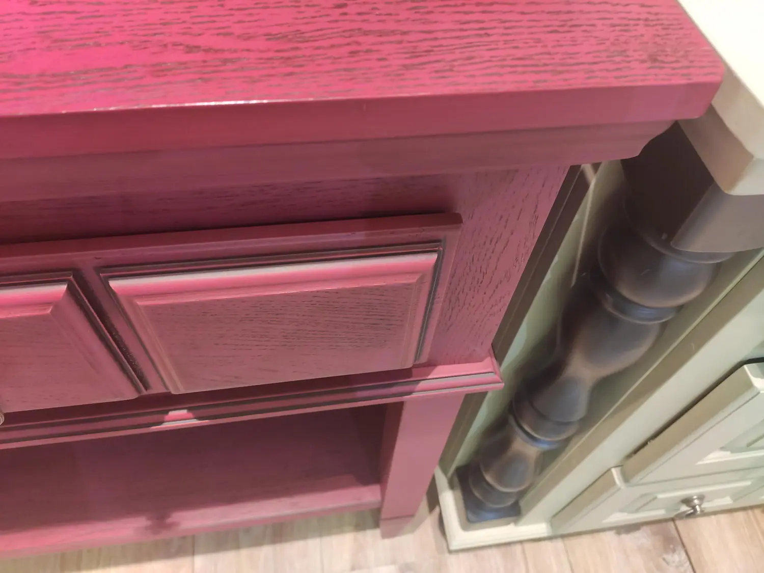 Материал - сосна, задняя стенка, дно ящиков - ДВП белого цвета.
