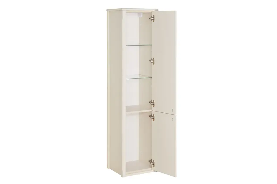 Подвесное исполнение пенала позволяет избежать проблем с уборкой, так как не нужно передвигать предметы. Европейская фурнитура обеспечивает плавное открывание и закрывание. Ручки с влагостойким матовым покрытием добавляют изысканности и удобства в использовании.