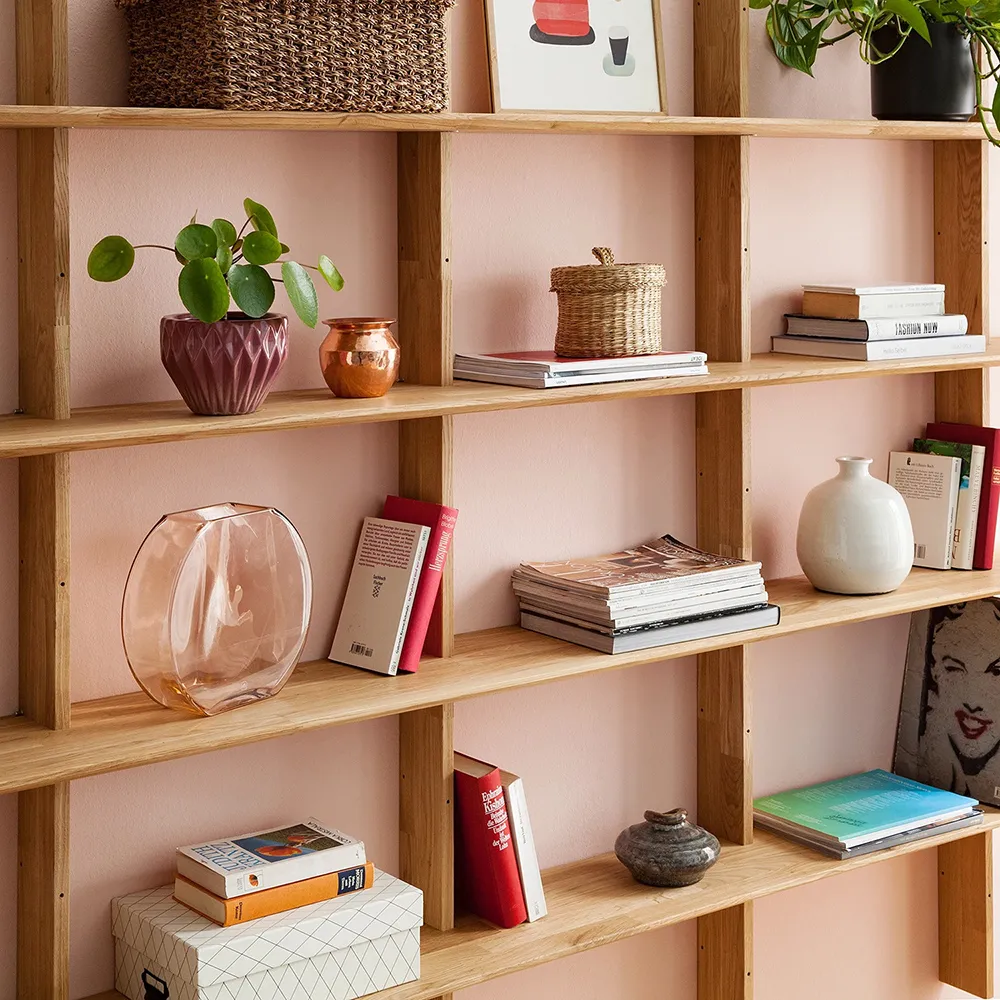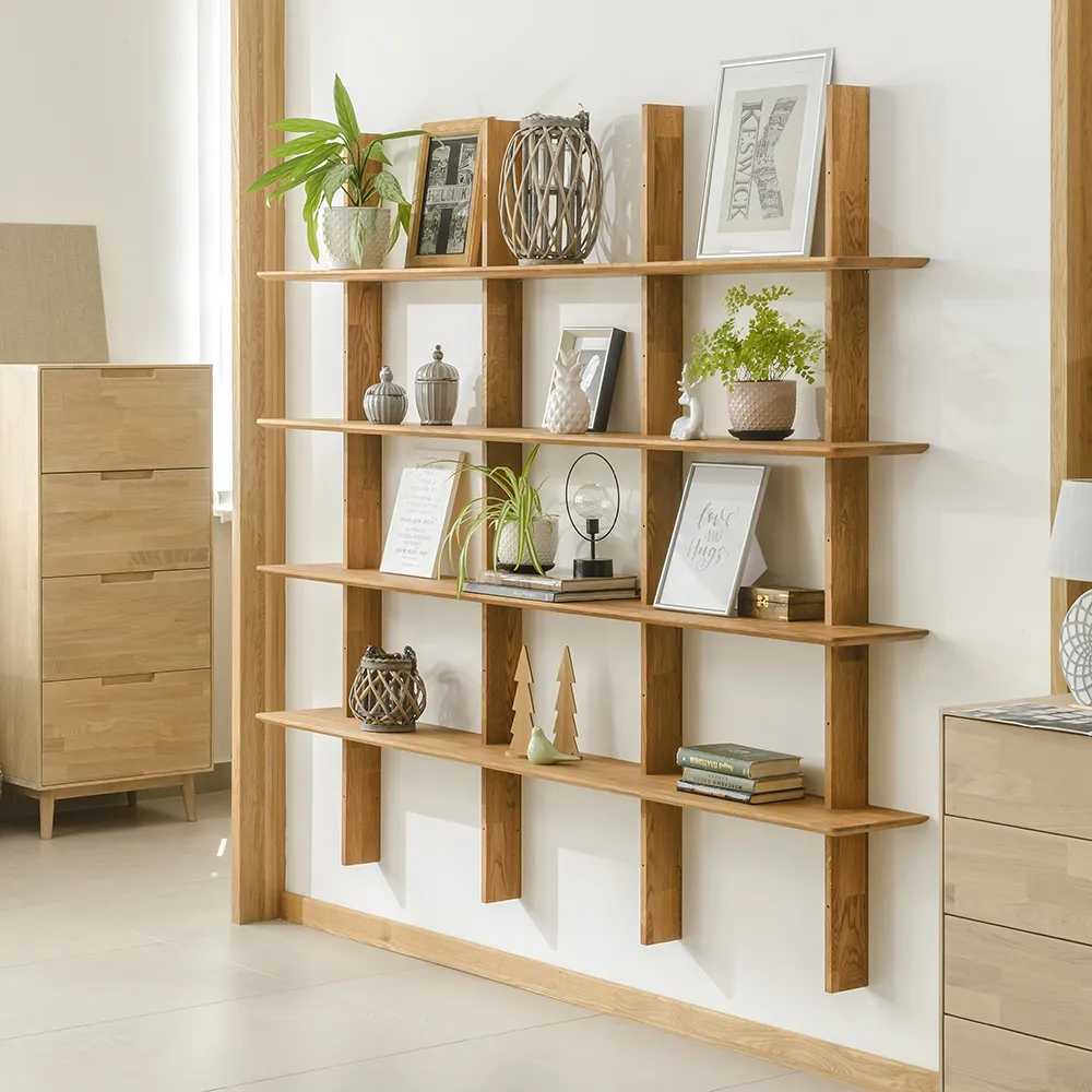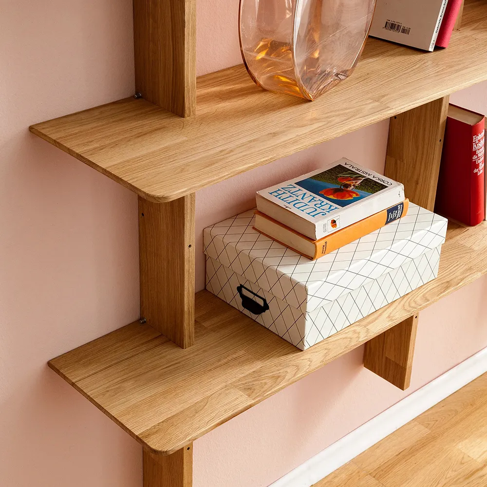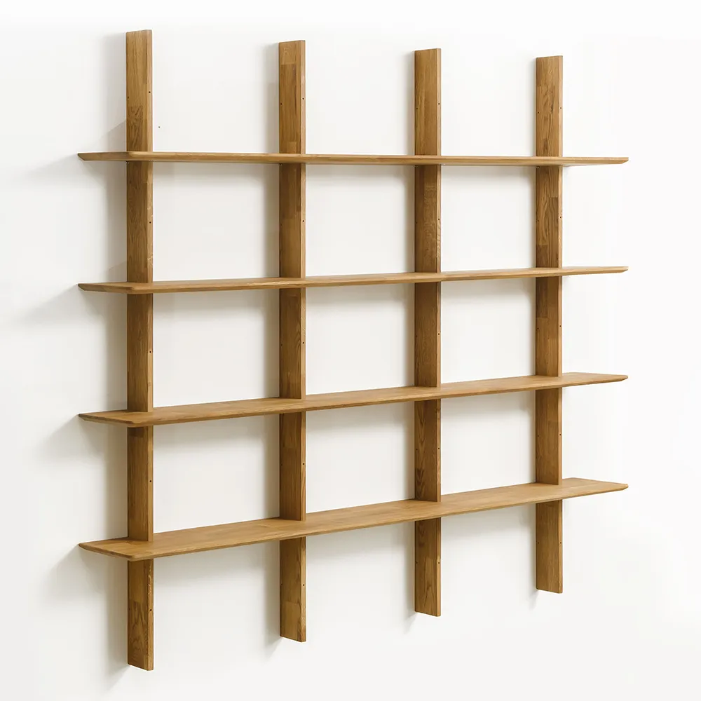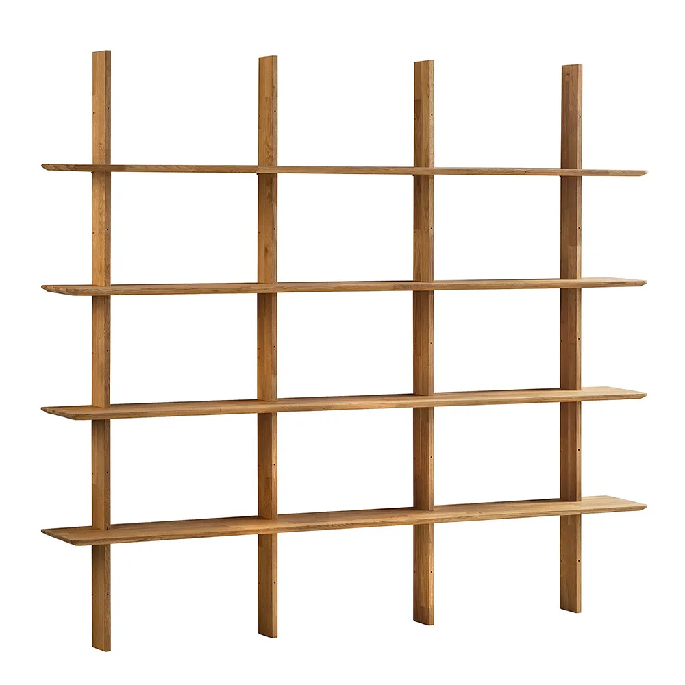 Настенный стеллаж изготавливается из натурального долговечного материала – массива дуба. Дерево имеет красивую текстуру и приятно на ощупь. У стеллажа три секции с двенадцатью полками. Он поставляется в разобранном виде, в одной упаковке. Размеры стеллажа 1968х250х1762 мм, вес 44 кг. Гарантийный срок на изделие – 1 год.