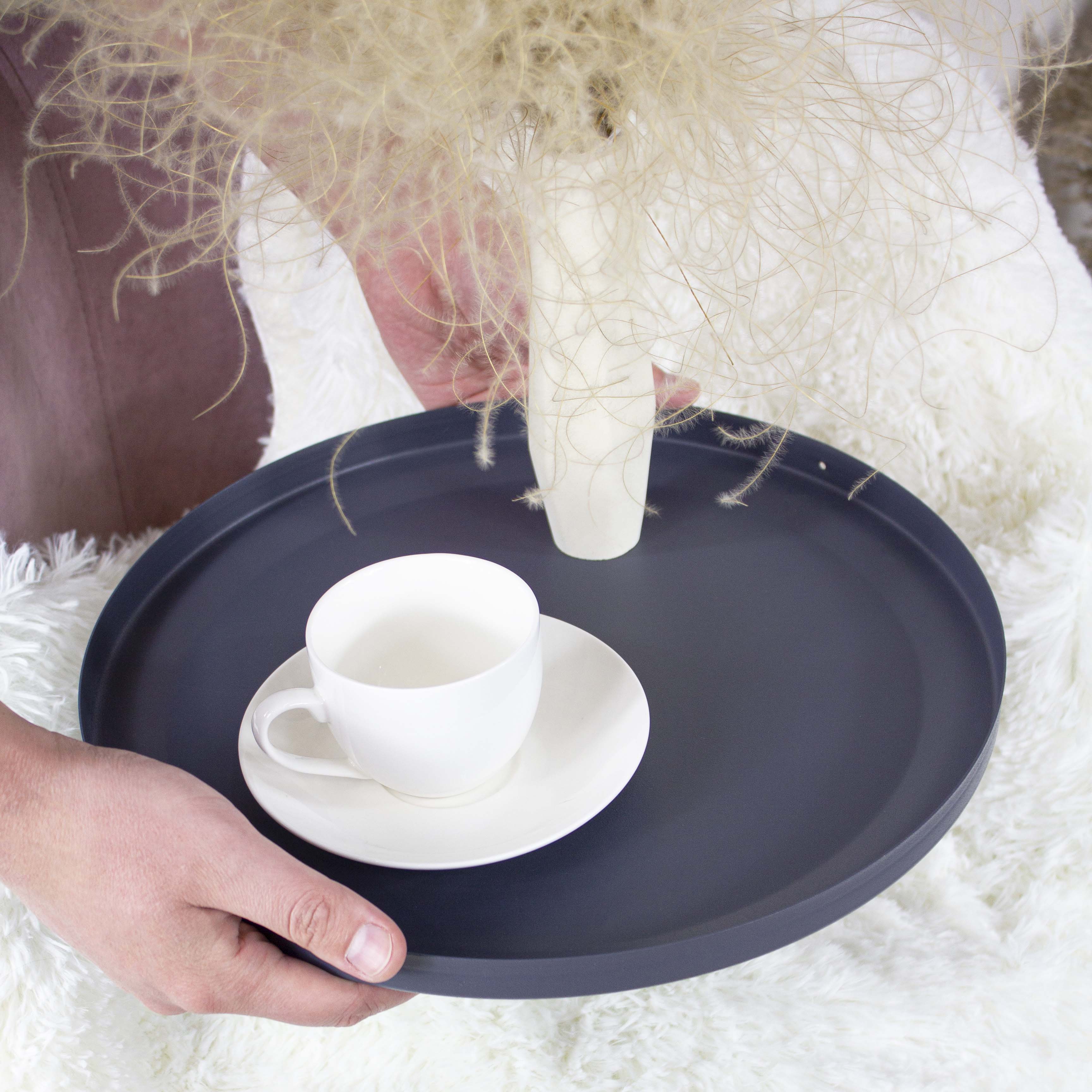 Столик легко поднять за опоры и перенести в любое место дома или офиса. Столешница легко снимается и ее можно использовать в качестве подноса, что очень удобно.