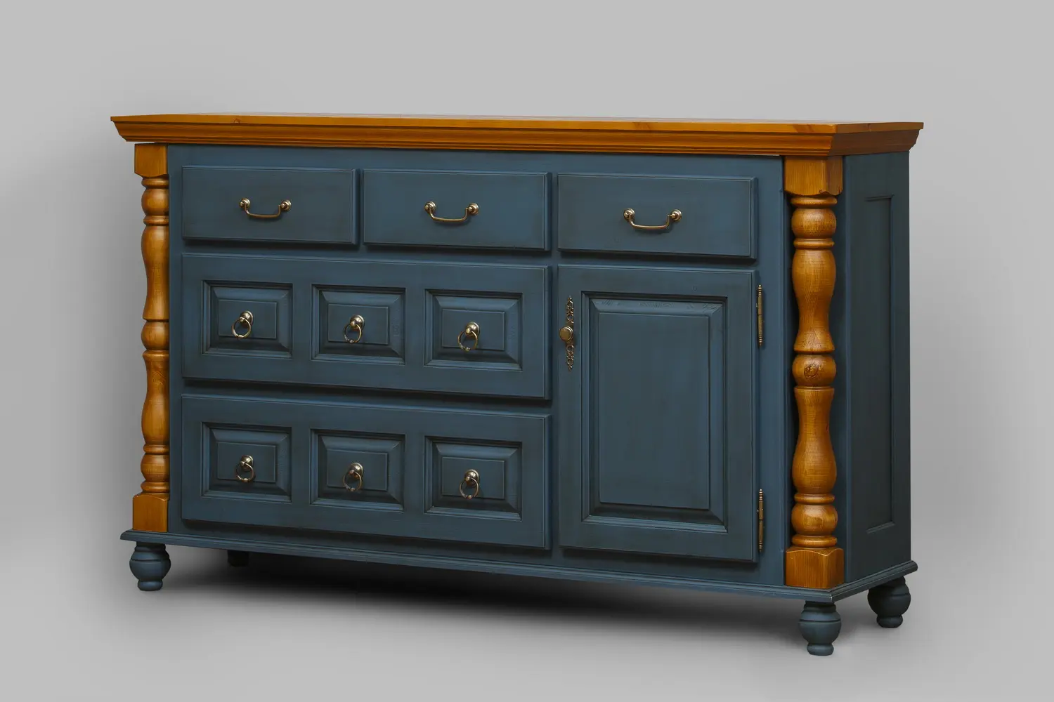 В нашем ассортименте комоды с дверцами и ящиками из натурального дерева, в разных отделках, с остекленными и неостекленными дверцами. Направляющие ящиков и дверные петли могут быть оснащены доводчиками для плавного закрывания. Есть комоды на высоких и низких ножках, а также модели без ножек, на массивных устойчивых цоколях.