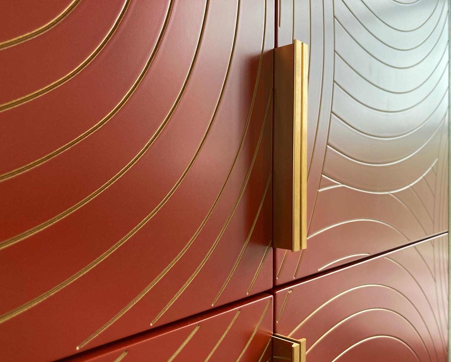 Корпус ЛДСП, фасады - МДФ, фрезерованные под краской с золотой патиной,