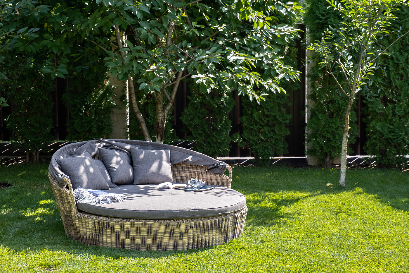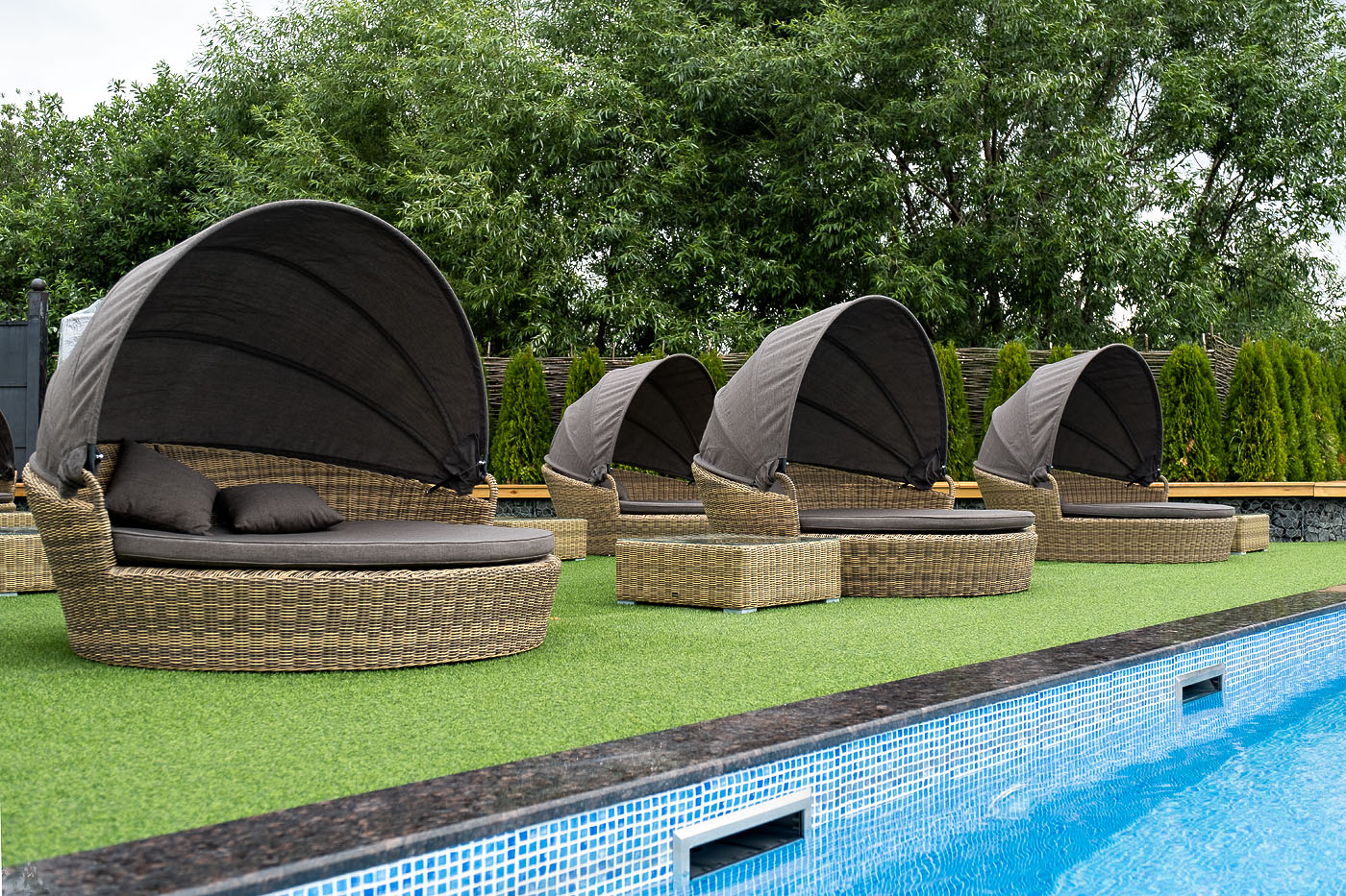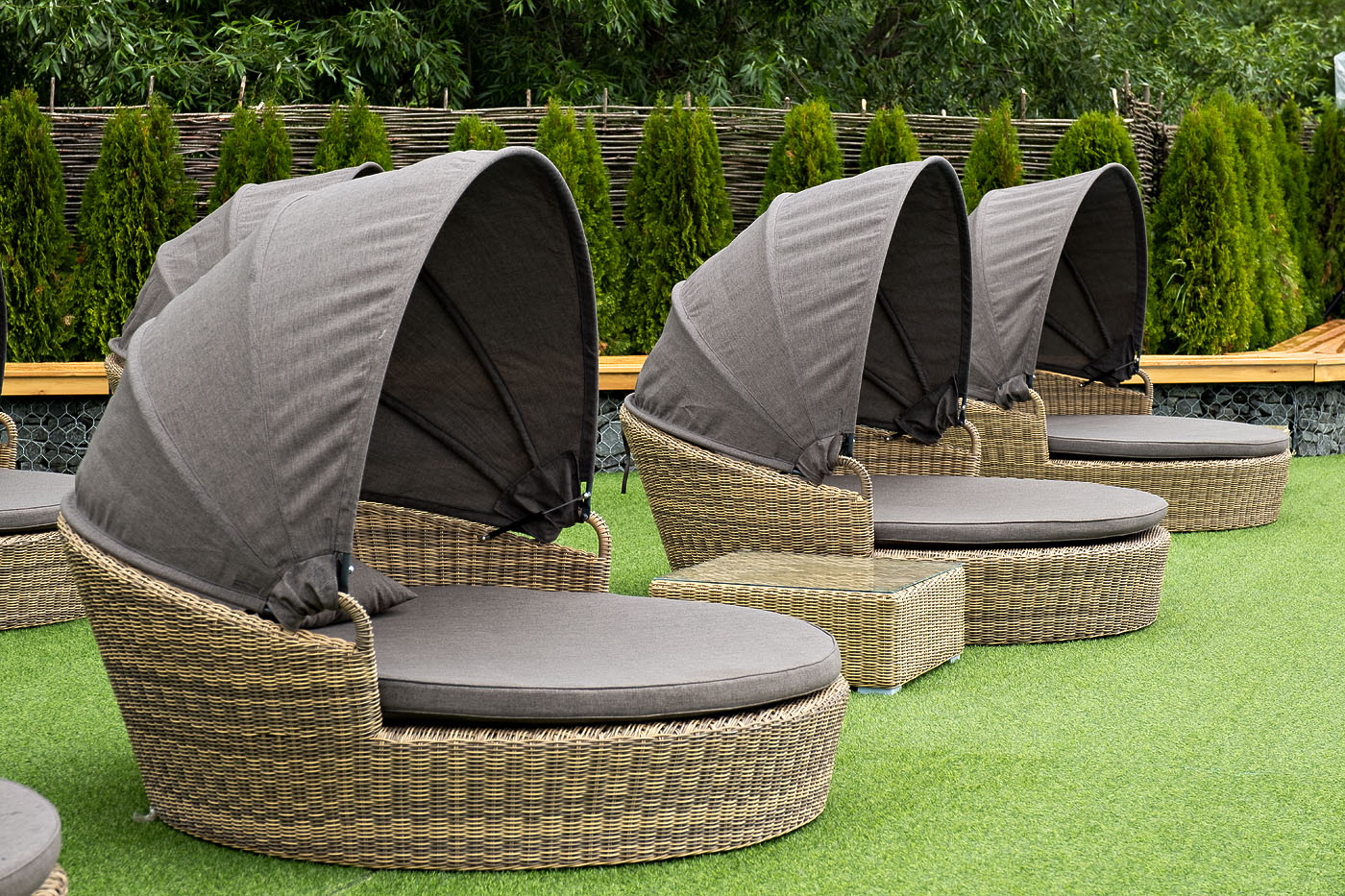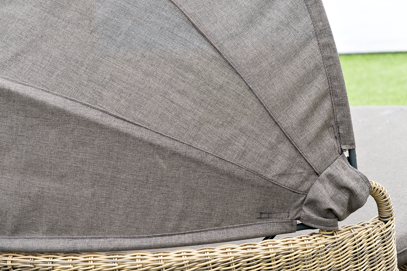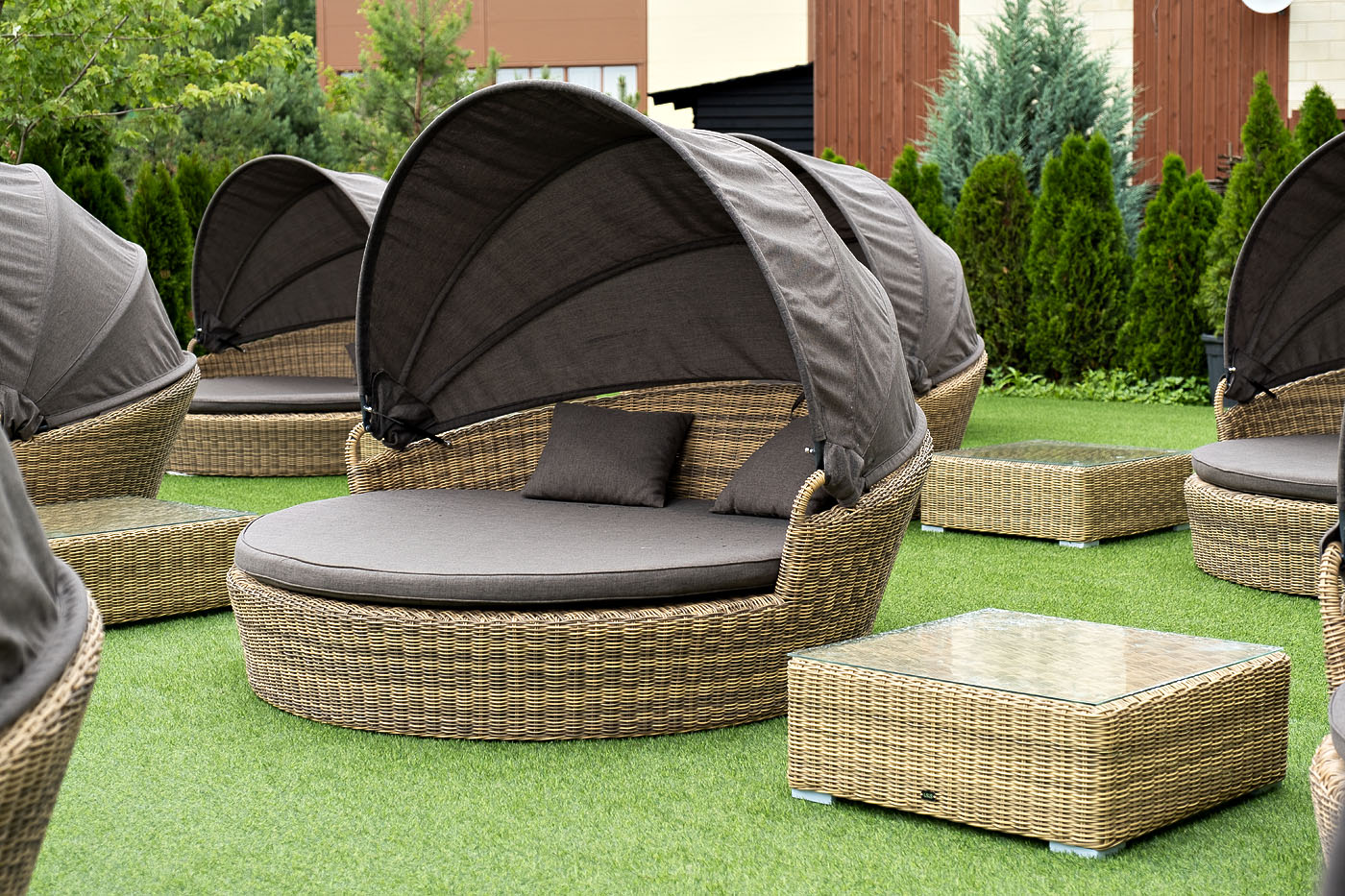 «Стильяно» - кровать из искусственного ротанга круглой формы. Она идеально подойдет для использования на открытом воздухе, в том числе и возле бассейна. Имеет соломенный оттенок. Функциональная круглая кровать высотой в 700 мм и диаметром в 1800 мм выполнена плетением вручную из искусственного ротанга. Конструкция усилена алюминиевым каркасом. Козырек откидывающийся, выполнен из водостойкой полиэфирной ткани. Мягкий матрас имеет съемный чехол серо-коричневого цвета, подлежит машинной стирке.