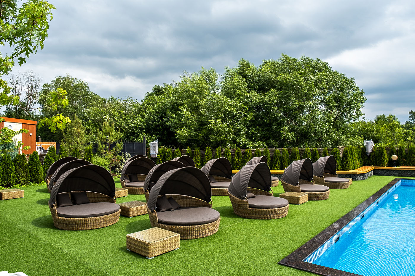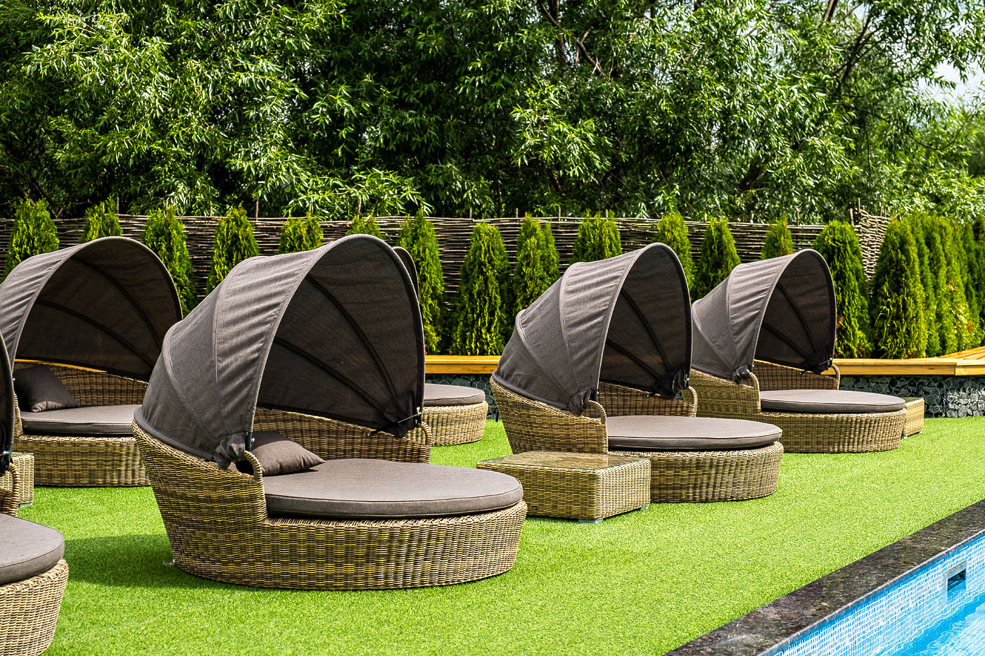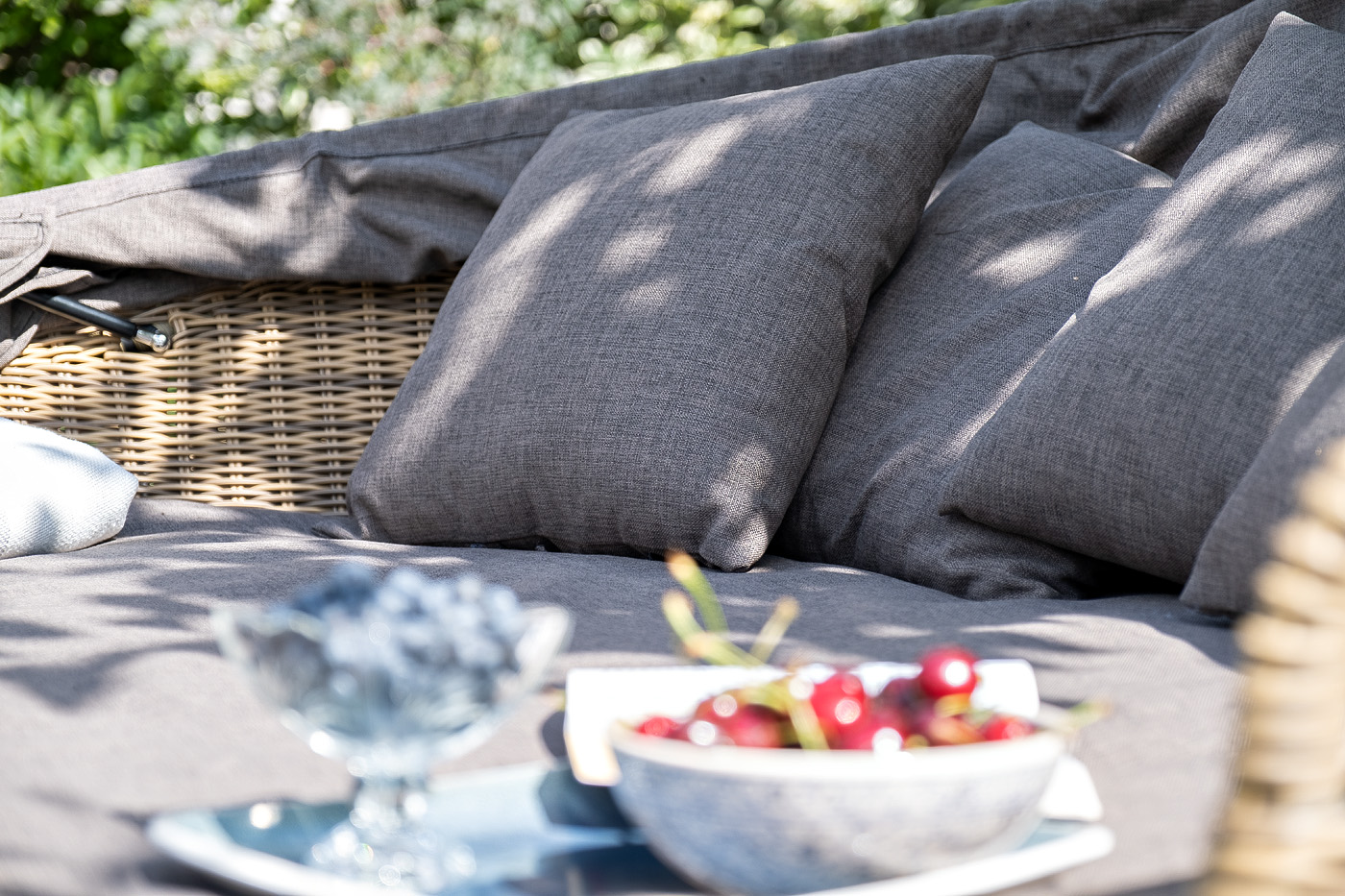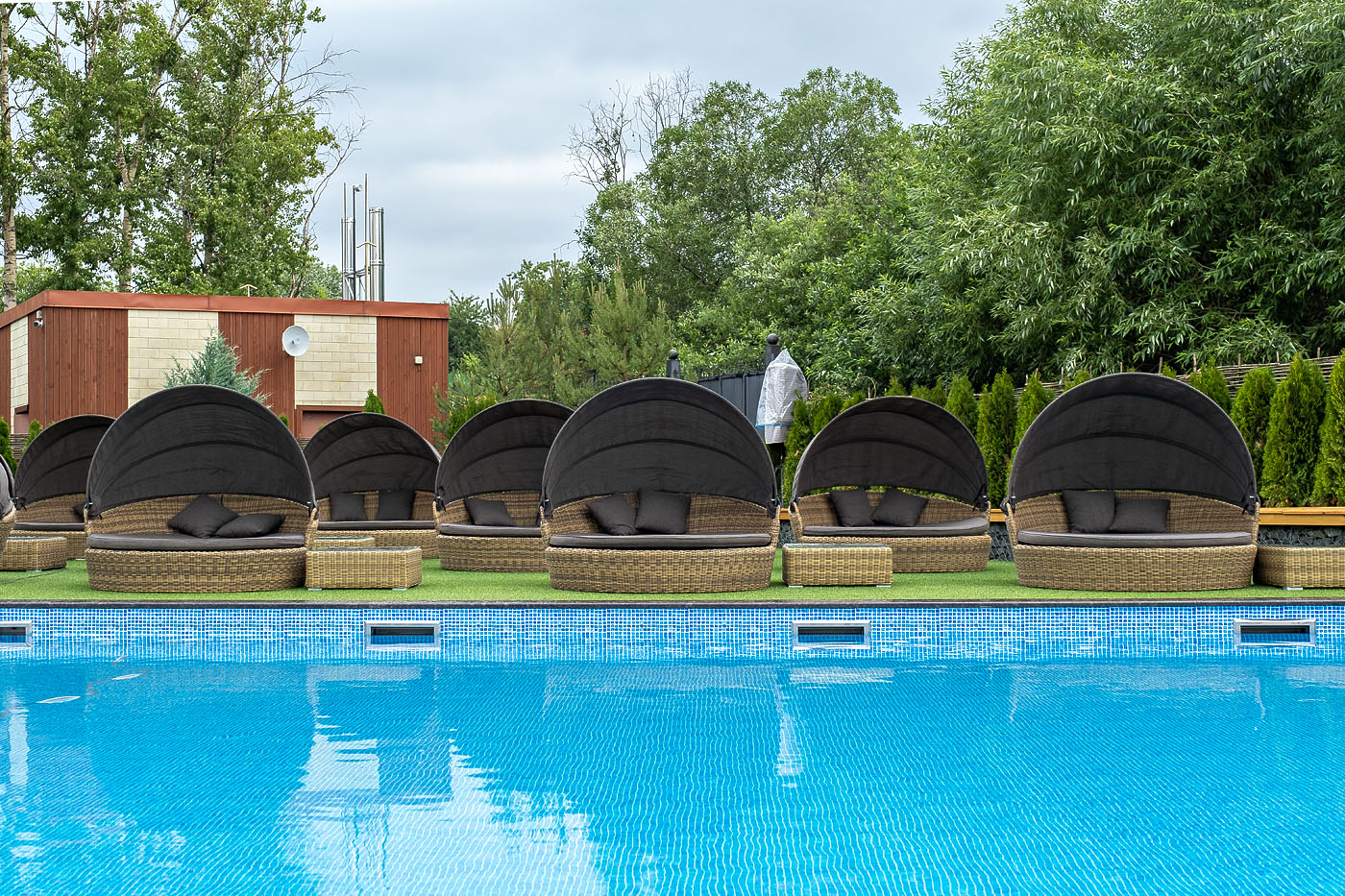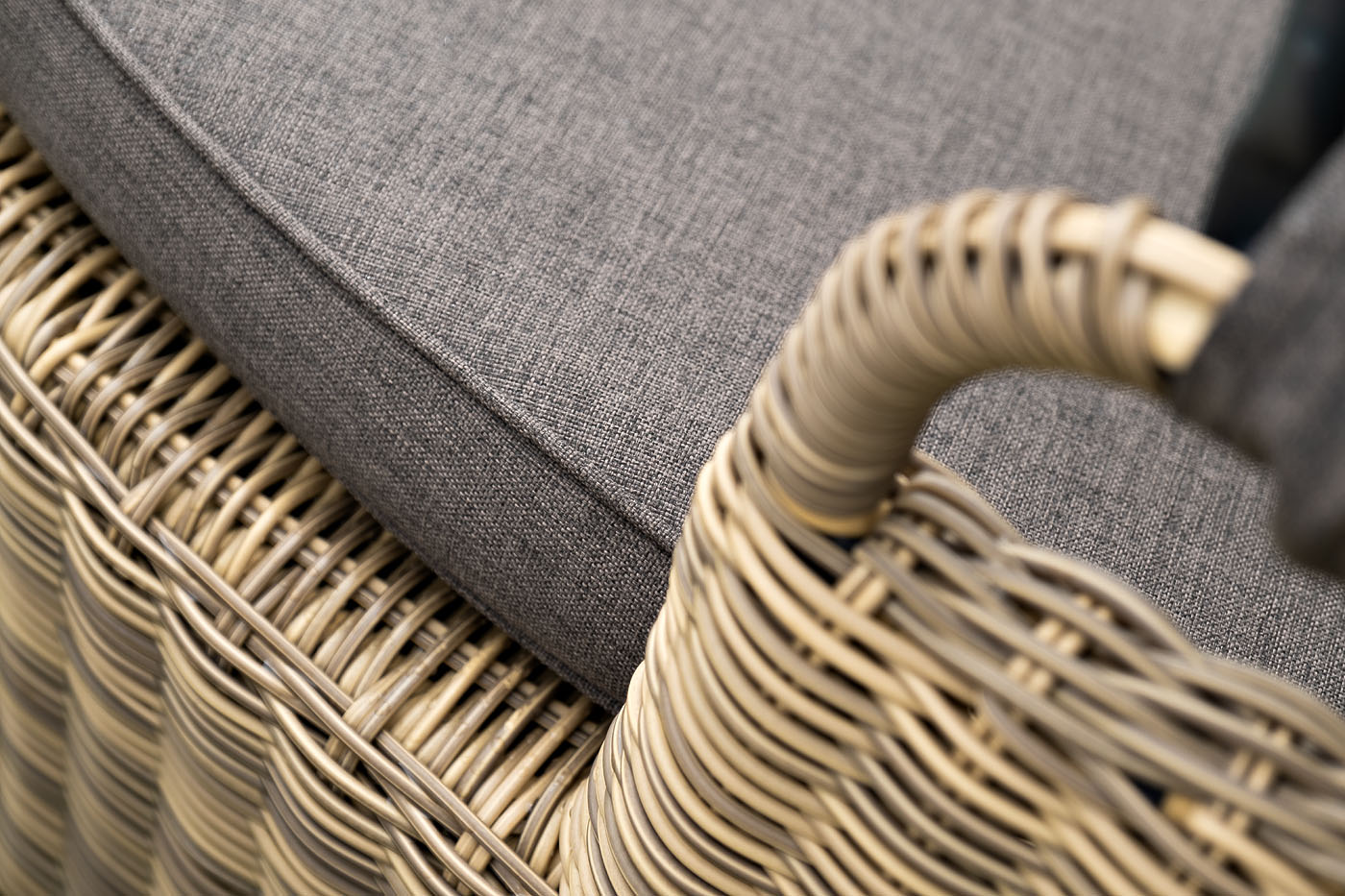 «Стильяно» - кровать из искусственного ротанга круглой формы. Она идеально подойдет для использования на открытом воздухе, в том числе и возле бассейна. Имеет соломенный оттенок. Функциональная круглая кровать высотой в 700 мм и диаметром в 1800 мм выполнена плетением вручную из искусственного ротанга. Конструкция усилена алюминиевым каркасом. Козырек откидывающийся, выполнен из водостойкой полиэфирной ткани. Мягкий матрас имеет съемный чехол серо-коричневого цвета, подлежит машинной стирке.