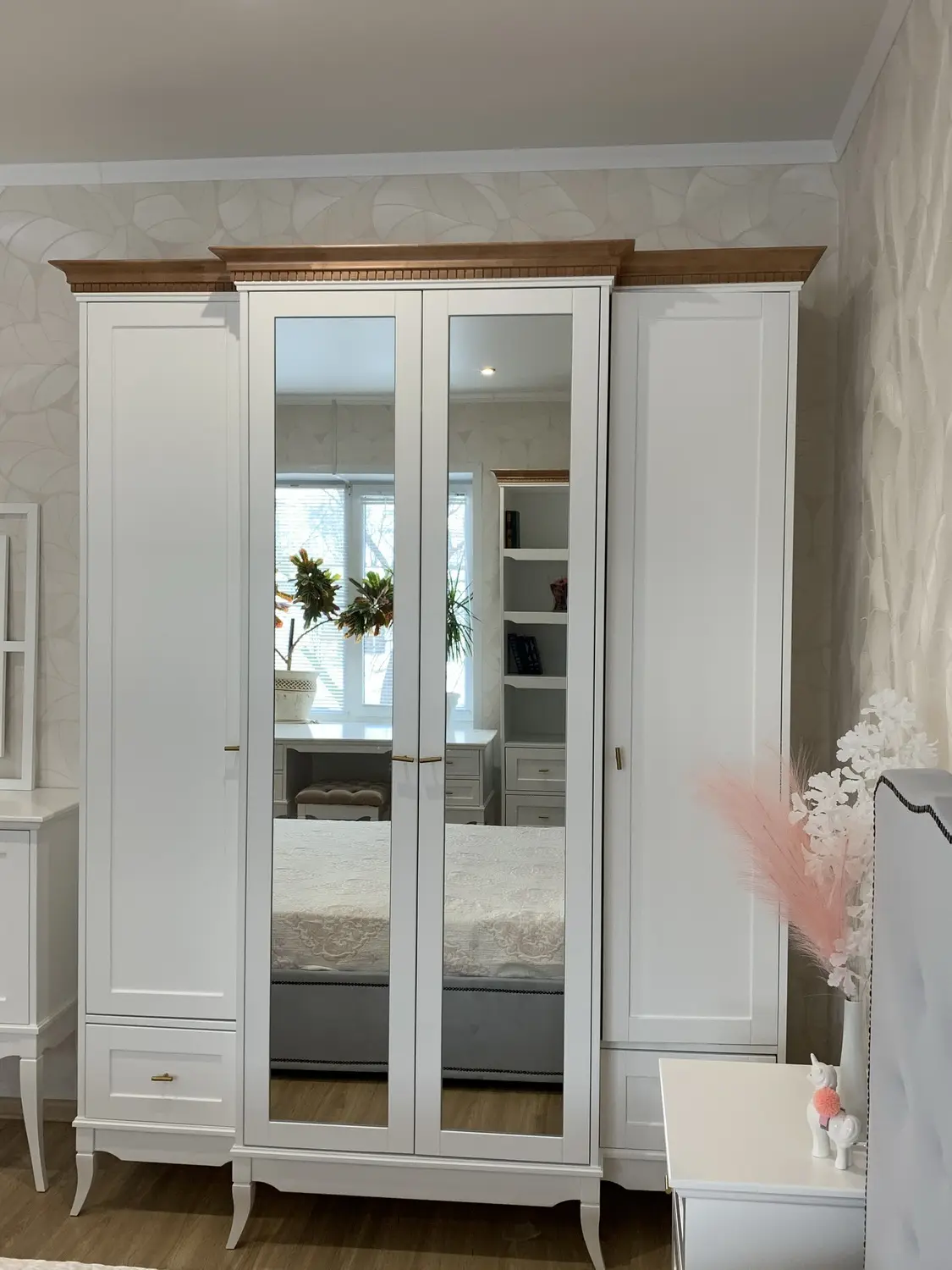 Зеркало расширяет пространство и делает шкаф визуально легче.