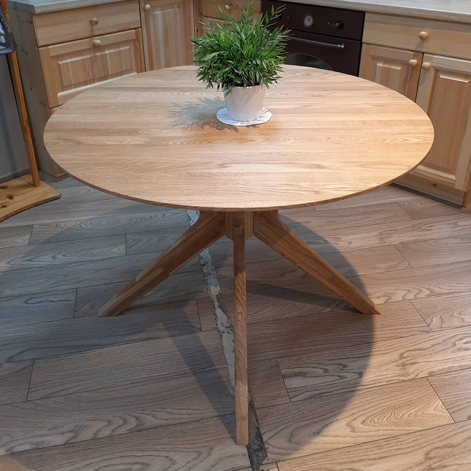Обеденный стол «Раунд 4» изготавливается из долговечного природного материала – массива дуба. Стол отличается простым и стильным дизайном, а, главное, вместительностью – за ним могут разместиться 6-8 человек. Еще одно преимущество – устойчивые наклонные опоры.
