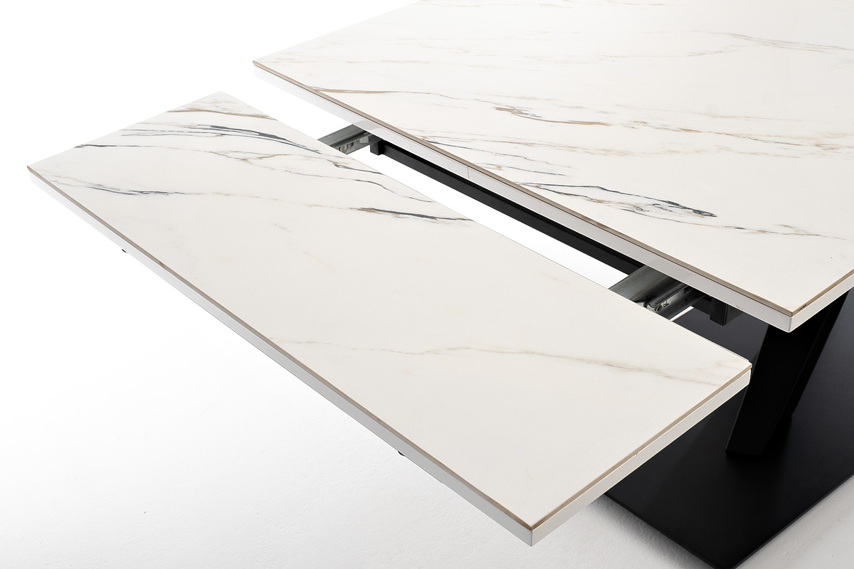 "Юпитер" стол интерьерный раздвижной обеденный из керамики, цвет белый глянцевый